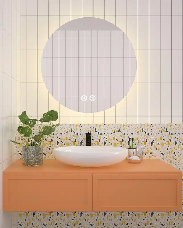 מראה עגולה דקורטיבית בעלת תאורה היקפית..