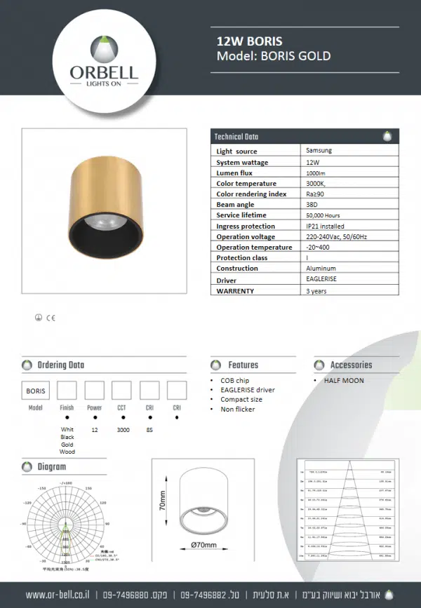 אנחנו מאפשרים התאמה אישית מלאה: שינוי צבע, כבל, גודל, רוזטה ואפילו צביעה לפי מניפת RAL – כדי שתוכלו לשלב את גוף התאורה בצורה מושלמת עם הסגנון והחלל שלכם.