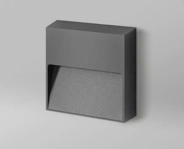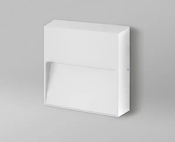 גוף תאורה צמוד קיר מרובע לשימוש תאורת חוץ. מקור אור 4W LED. מיוצר מאלומיניום, זמין בצבע לבן, שחור ובזלת.