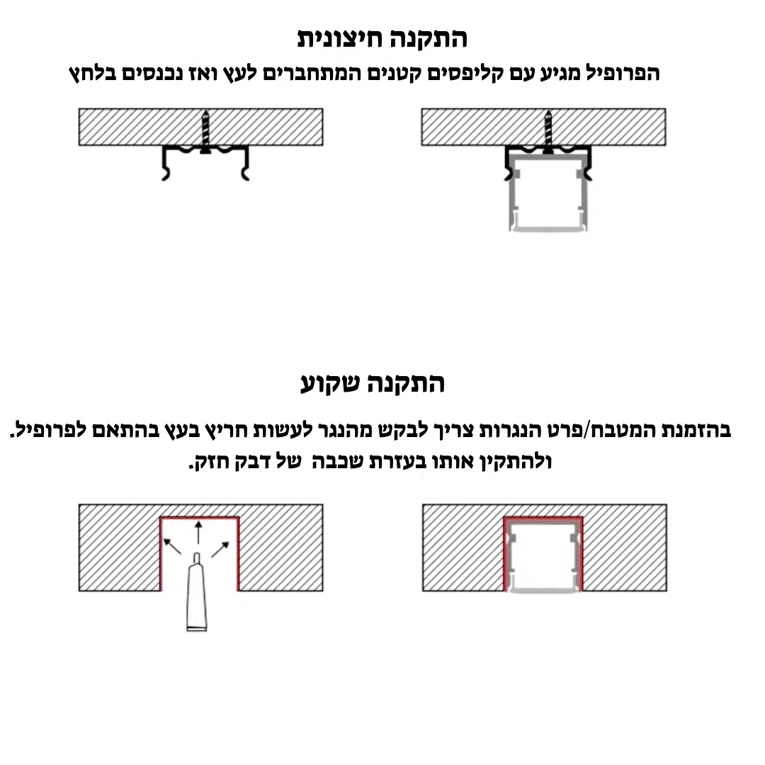פרופיל תאורה לד למטבח בנגרות דק במיוחד מתאים לשימושים שונים, להתקנה מתחת לקלפה במטבח בתוך ארונות בגדים , להתקנה בויטרינות יוקרתיות ועוד מגוון שונה של שימושים…