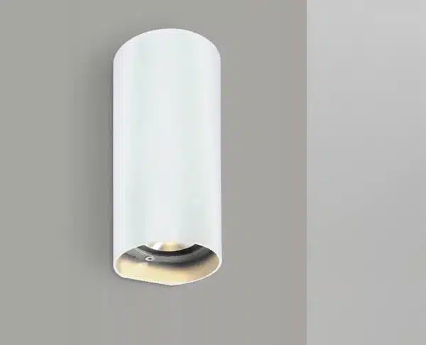 גוף תאורה צמוד קיר צילינדר לשימוש תאורת חוץ. מקור אור 18W LED. מיוצר מאלומיניום, זמין בצבע לבן ובזלת.