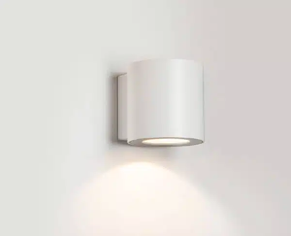 גוף תאורה צמוד קיר עגול לשימוש תאורת חוץ. מקור אור 6W LED . מיוצר מאלומיניום, זמין בצבע לבן ובזלת.
