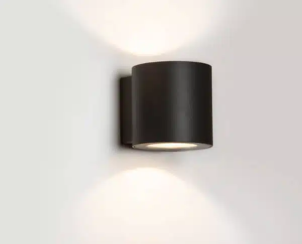 גוף תאורה צמוד קיר עגול לשימוש תאורת חוץ. מקור אור 6W LED . מיוצר מאלומיניום, זמין בצבע לבן ובזלת.
