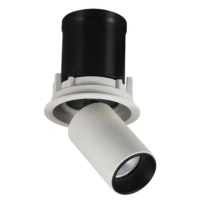 גוף תאורה שקוע בעיצוב מדויק ונקי, בעל מנגנון נשלף המאפשר שליפה חלקית לקבלת אפקט של ספוט והכוונת אלומת האור בהתאם לדרישת המרחב.