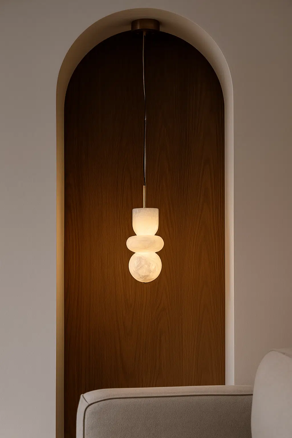 אלבסטר טריקולד-Alabaster tricolad הינו גוף תאורה תלוי דקורטיבי ועדין,מגיע עם פרזולים בגוון ברונזה.
