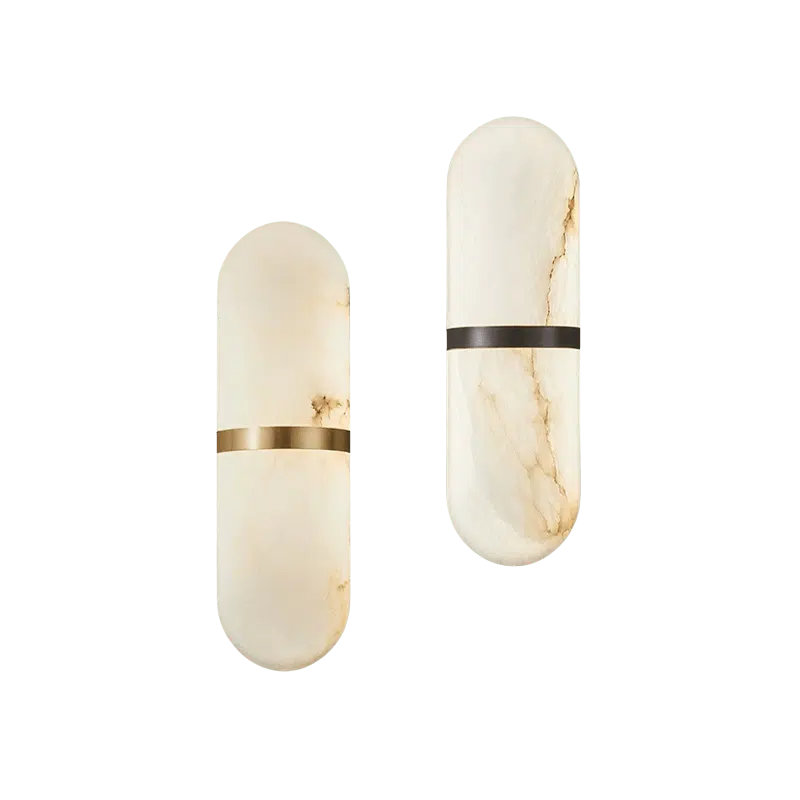 חומר גוף: אבן טרוורטין טבעית וזכוכית חלבית