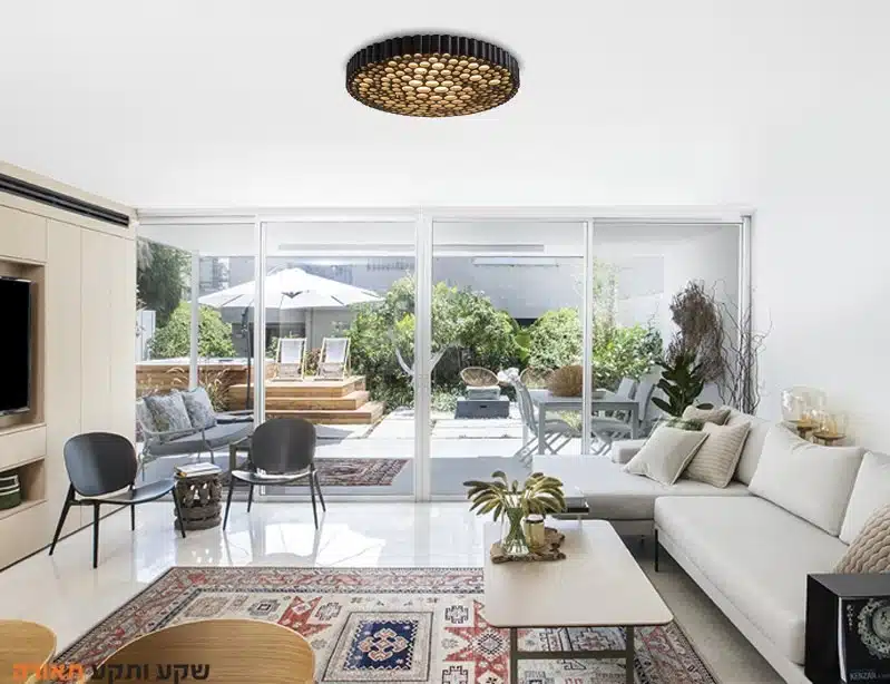 גוף תאורה צמוד תקרה בעיצוב ייחודי מיוצר מאלומיניום בעל מראה של צינורות חלולים היוצר עיצוב מודרני .