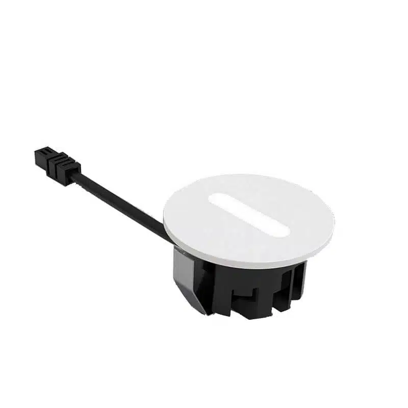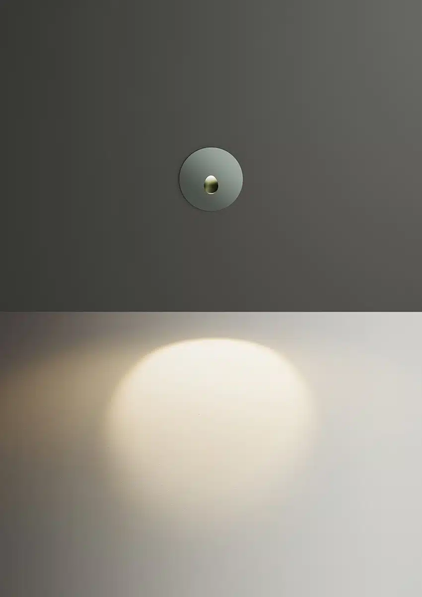 שקוע קיר עגול בעיצוב נקי עם חריץ תאורה בצורת טיפה, יוצר אפקט תאורה רך וממוקד. אידיאלי למעברים, חדרי מדרגות וחללים בהם רוצים לשלב תאורה פונקציונלית עם עיצוב מינימליסטי.