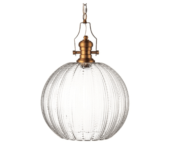 מנורת תליה מזכוכית מעוצבת, בעלת פירזול נחושתי מרשים במיוחד