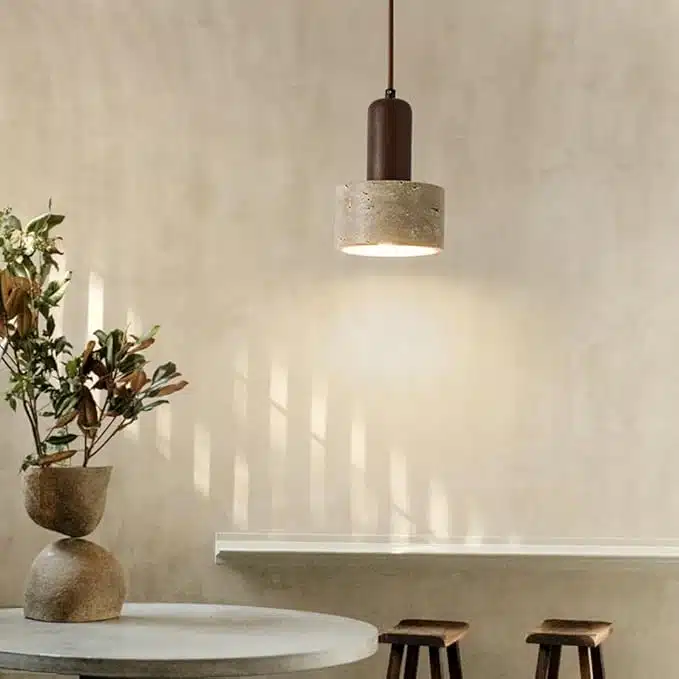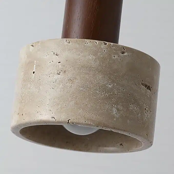 גוף תאורה ייחודי המשלב אבן טבעית מסוג Travertine יחד עם עץ מלא, בעבודת יד מוקפדת.