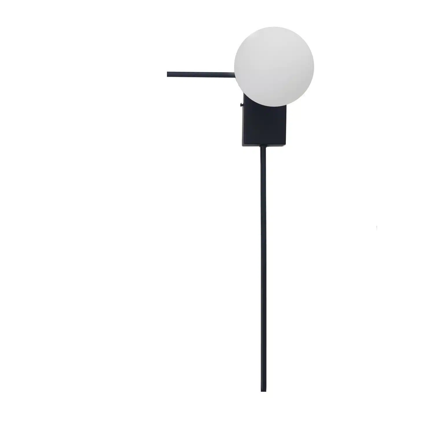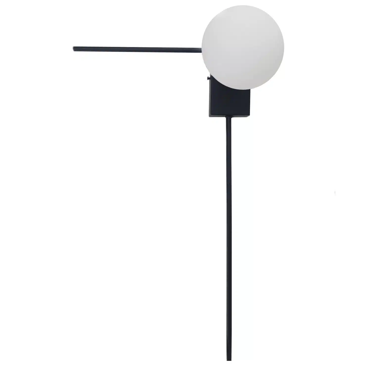 גוף תאורה צמוד קיר דקורטיבי במיוחד , שילוב של כדור זכוכית חלבי עם פסים דקים שחורים.