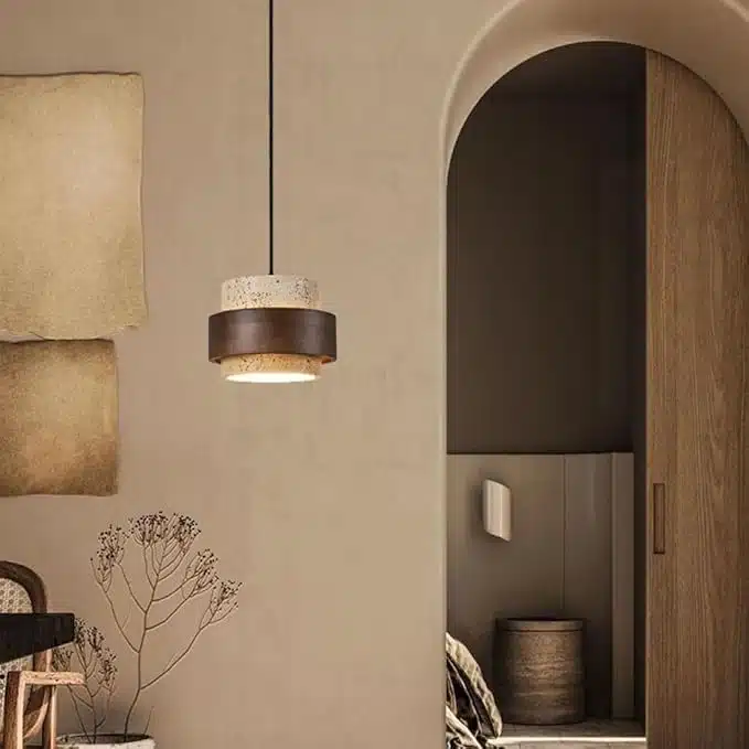 גוף תאורה ייחודי המשלב אבן טבעית מסוג Travertine יחד עם עץ מלא, בעבודת יד מוקפדת.