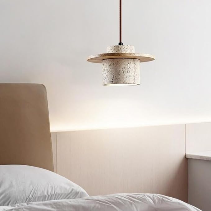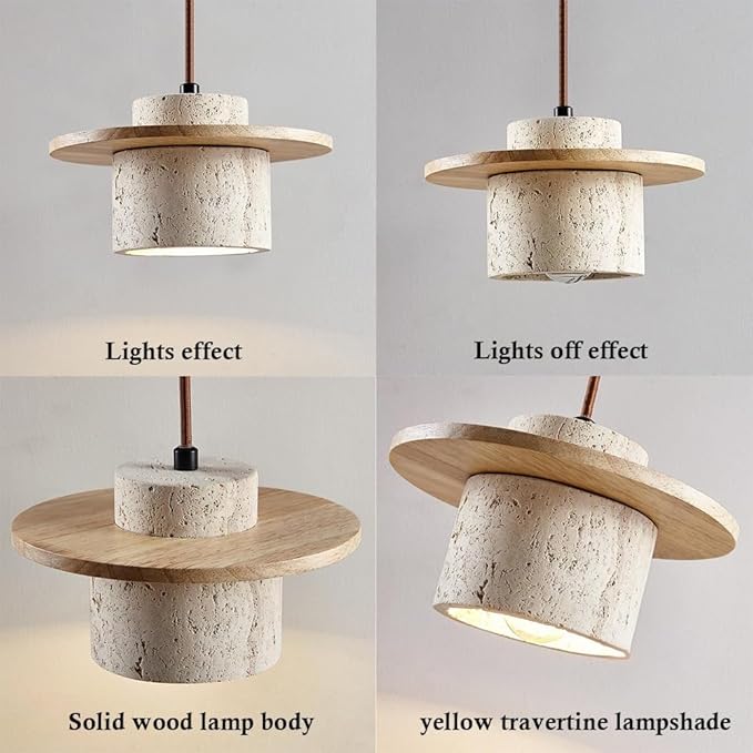 גוף תאורה ייחודי המשלב אבן טבעית מסוג Travertine יחד עם עץ מלא, בעבודת יד מוקפדת.