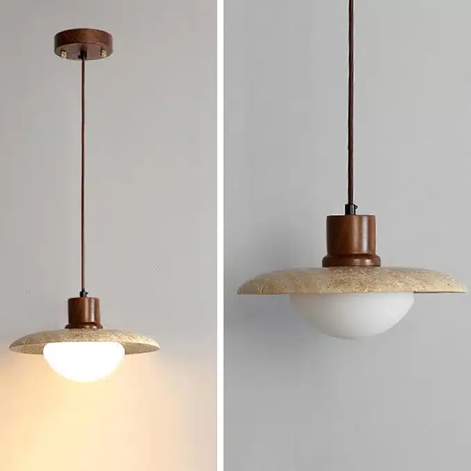 גוף תאורה ייחודי המשלב אבן טבעית מסוג Travertine יחד עם עץ מלא, בעבודת יד מוקפדת.